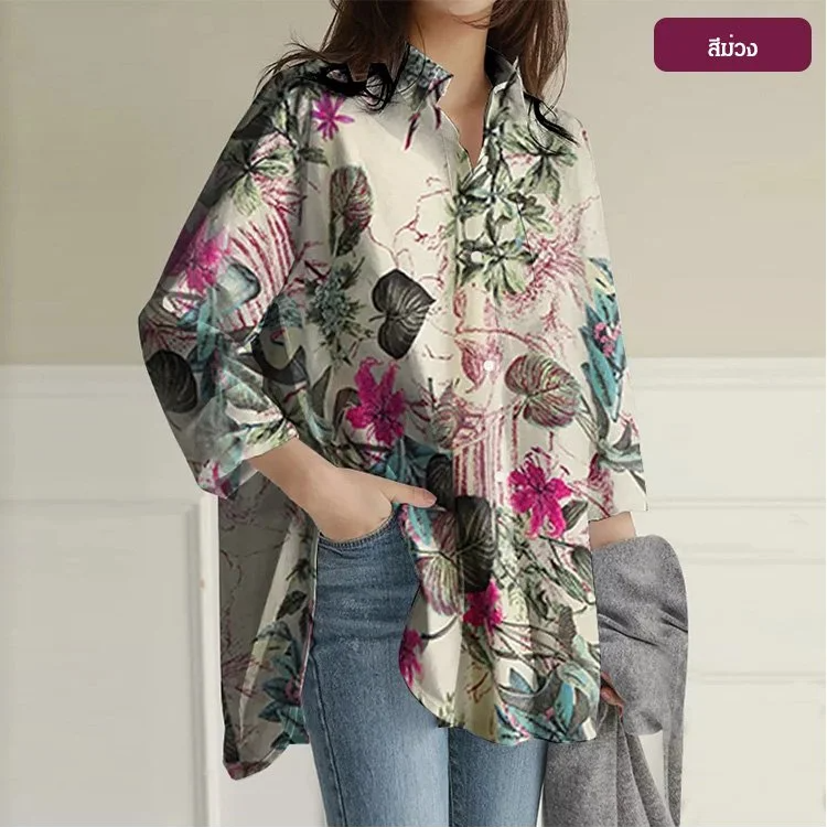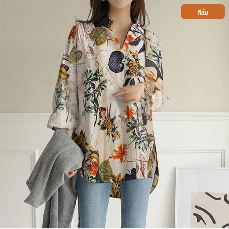 เสื้อยืดทรงหลวม พิมพ์ลาย